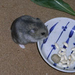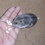 ケージ掃除が終わって、エサの時間です。コメコメポップを手の平からあげてみました。