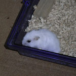 ケージ掃除が終わって、ケージに戻されたアイ。なぜか、ケージの隅に・・・。