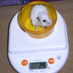 ケージ掃除が終わって、コー太はも体重測定です。コー太は先週より少し体重が減りました。コー太は、体重増えませんね。