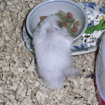 ケージ掃除が終わって、エサの時間ですが、エサ皿に近づいてはみたものの、ケージに戻りたいのが先決なようです。また、サークル内をウロウロし始めました。