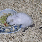 掃除が終わって、アイもエサの時間です。さっそく、エサ入れに向かっていました。