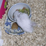 ケージから出てきて、とりあえずサークル内を散歩していました。ケージ掃除が終わって、さっそくエサの用意です。