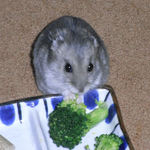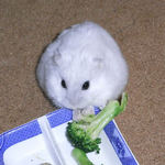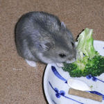 エサの用意が出来て、さっそくブロッコリーに食いついているコー太です。