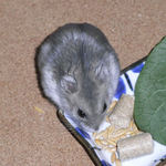 ケージ掃除中は、サークルカジカジしてたりしました。そして、エサの時間。さっそく、エン麦に食いついていました。