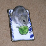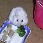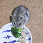 ケージ掃除が終わって、エサの時間。コー太もブロッコリーに食いついていました。