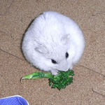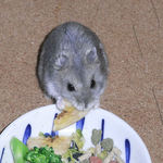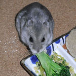 掃除が終わって、エサの時間。ブロッコリーに食いついていたましろです。