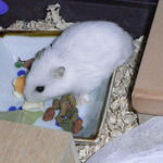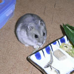 夜のケージ掃除、今日はコーキからです。最近、めっきりおとなしくなってしまったコーキ。回し車もあまり回していないようです。 老ハムのアイと同じくらいしかまわしてません。 ケージから出てきて、さっそくエサの時間です。大好物の煮干を食べていました。