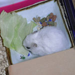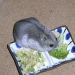 夜のケージ掃除、今日はアイからです。 今日も、回し車の下で休んでいました。毛並みが悪くなった感じだけれど、元気は元気です。 エサの用意が出来て、さっそくキャベツに食いつくアイです。