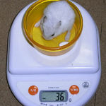 夜のケージ掃除、今日はアイからです。 今日は、週に一度の体重測定の日です。さっそく、アイを計量。先週より、体重が減ってました。