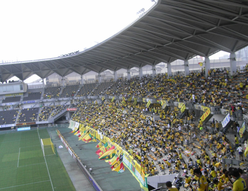 一般入場開始直前にスタジアムに到着。暑い日で、スタジアムに着くまでに汗だくになってしまった。でも、フクアリは風があるんで結構涼しい。特に最上段付近は常に風が入り込んでくるので、寒いくらいだ。