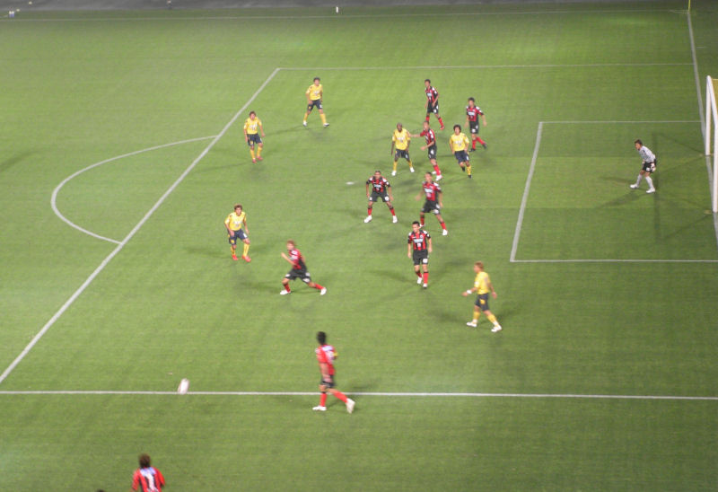 さて、試合。巻がサブからのスタート。レイナウドと新居の2トップ。右MFに谷澤、左MFに苔口、ボランチに下村と工藤が入った。斉藤はやっぱり怪我かな!?
