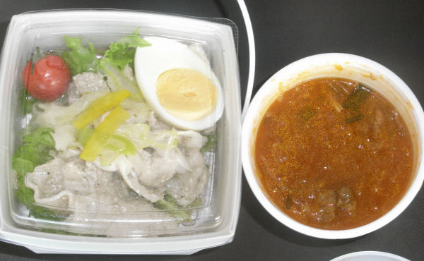 塩ダレ豚しゃぶ&キムチチャーハン弁当を購入。あと、キックオフさんで、キムチスープも購入。この季節は、キムチスープがおいしい。