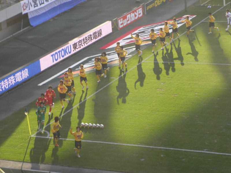 この日は、ジェフレディースの一部昇格報告会がありました。ジェフレディースのみなさんは、いつも元気いっぱいです。最後に場内一周ですが、ゆっくり歩いてまわるんではなくて、走って場内一周でした。