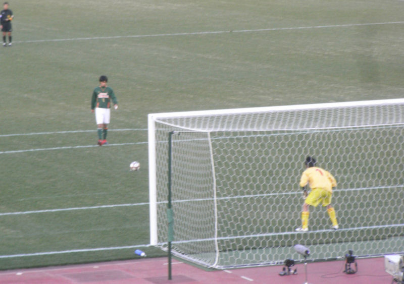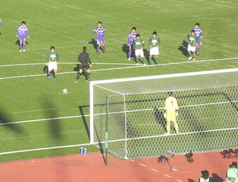 青森山田は柴崎があっさりと決めたに対して、関大一は一人目が外してしまう。