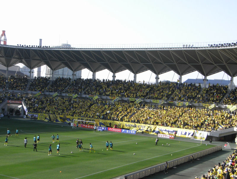 客入りはどんなかなと思ったけれど、ホームのゴール裏はすぐに埋まったし、バックスタンドも満員状態。メインスタンドとアウェイゴール裏は少なめでしたが、これだけ入れば上出来でしょうね。