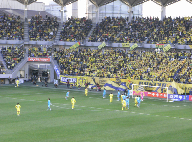 ジェフは、巻の落としのパスがミスパスになる事が多かったのが痛かった。まぁ、それ以外の場面でも最後のところで、クロスが入らなかったりと、シュートまで持ち込めないシーンが多かった。