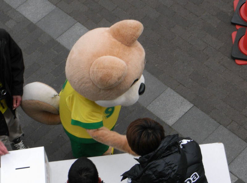 そして、募金して帰りがけに、下をみたらなんとユニティが募金してました。そして、選手と握手もw