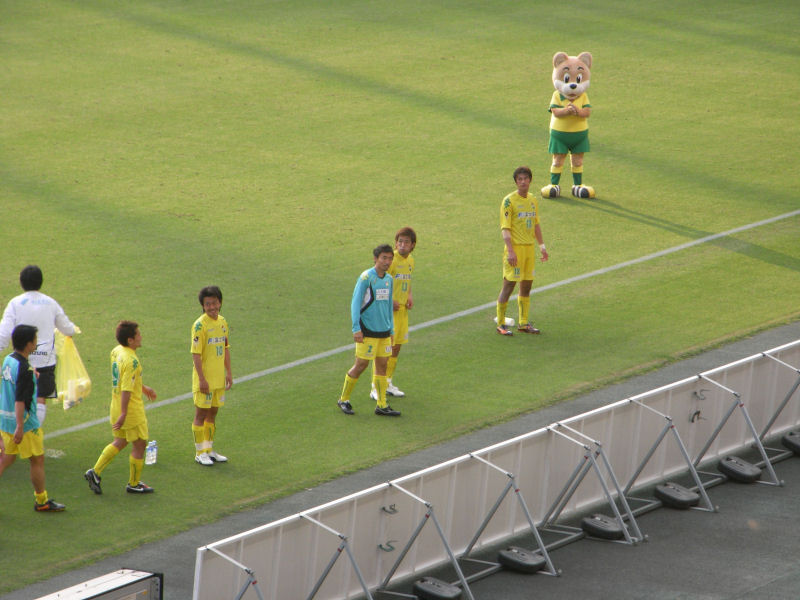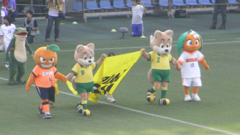 愛媛FCのマスコットキャラたちが来てたんですが、どこにいるのかよくわらからずに、お目にかかれず。選手入場の時にようやっと見れました。