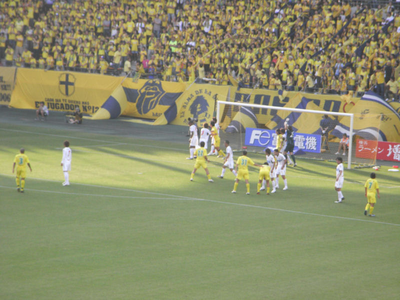 まず、立ち上がりいきなりジェフがチャンスをつかむ。右サイドの太田からのクロス。ファーに抜けたのを倉田に渡る。数歩中に切れ込んでのシュート。相手GKが後逸してしまい、そのままゴールへ吸い込まれる。早々にジェフが先制する。