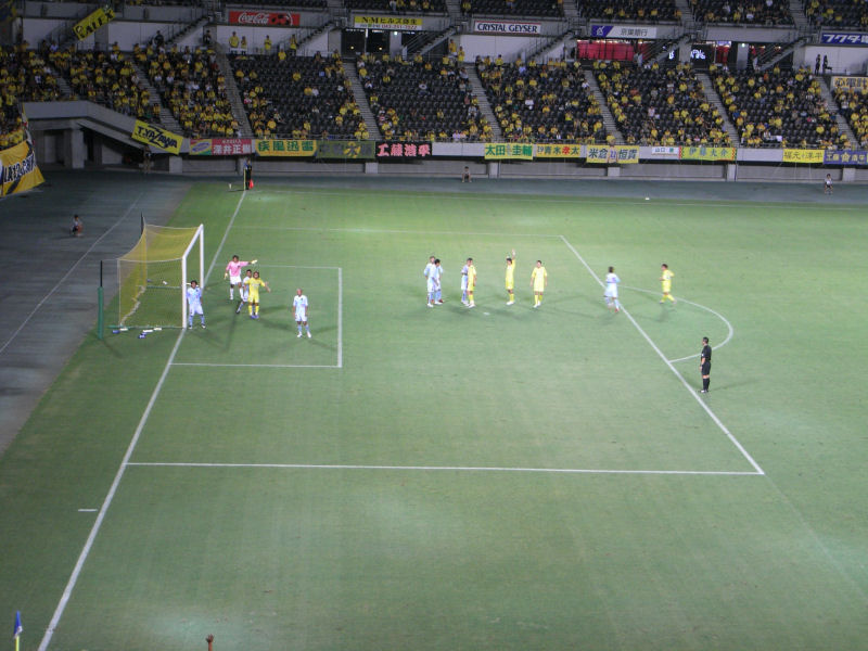 さて、試合です。ジェフの先発は、GKに岡本、CBに良太と福元、右SBに坂本、左SBに和田、ボランチに山口と中後、トップ下に谷澤、右WGに工藤、左WGに村井、トップにネットという布陣でした。