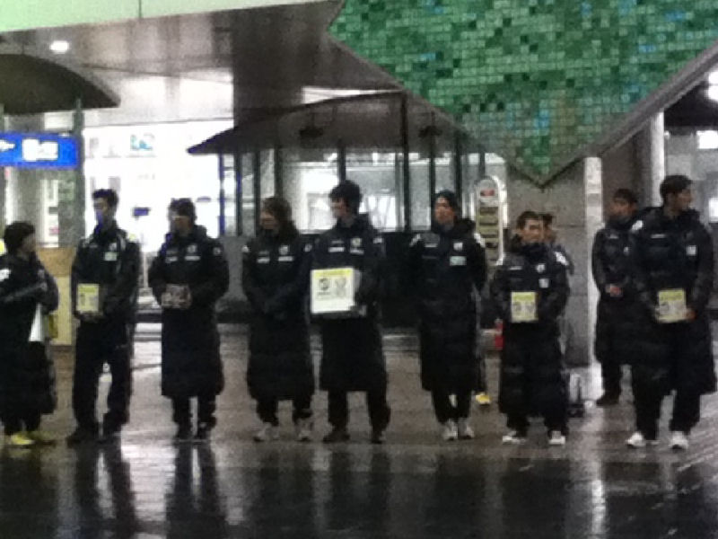 さて、月曜日ですが、ジェフの選手が千葉駅で募金活動をしているという事で行ってきました。募金のために行った訳ではないですが、結構な人数の選手がいましたね。
