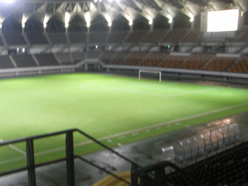 最初、大型モニターの近くで観ようと思ってたんだが、センター付近よりアウェイよりの席は使えないという事で席を移動。PVなんだから、もっと近くで見させてくれてもいいようなものだが。実際、遠すぎて、試合中はボールが何処にあるのか判らないことも多々あった。