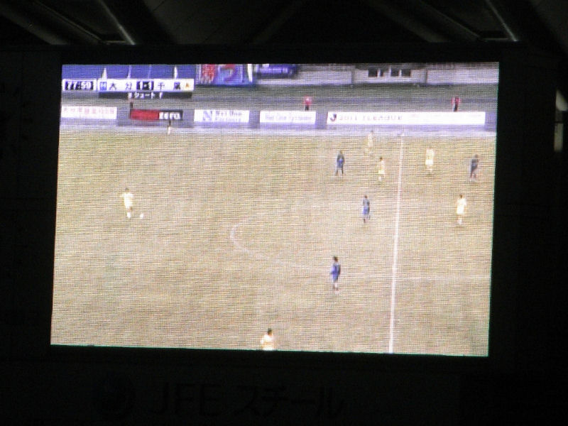 この得点で勢いにのるジェフが、大分を攻め立てる。ここ数試合に比べるとゴール前まで攻めこむケースが多い。出来れば、この時間帯に追加点を奪って試合を決めたいところだった。