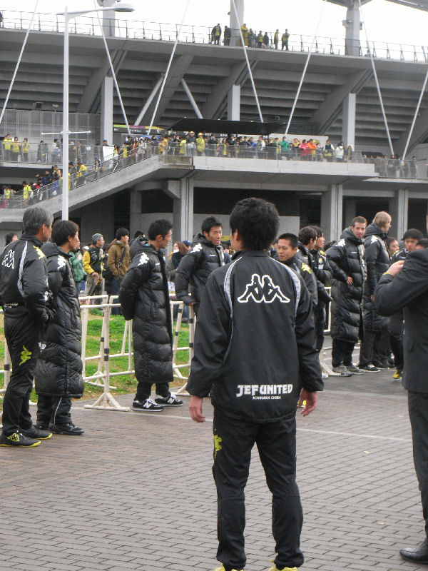 試合後、選手が公園入口方面で整列して見送りしてくれるというのがあったのだが、セレモニー終了後にさっさと帰ろうと思ってたんだが・・・。意外と早く選手ができてきていたので、ちょっと遠巻きで見てから帰りました。