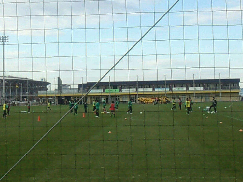 ユナパに着いてみたら、スタンドの方に見学者が多数。どうやら、スタンド側のピッチで練習をやるようでした。