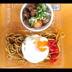 代わりに、屋台村で焼きそばと鳥もつ煮を購入しました。
