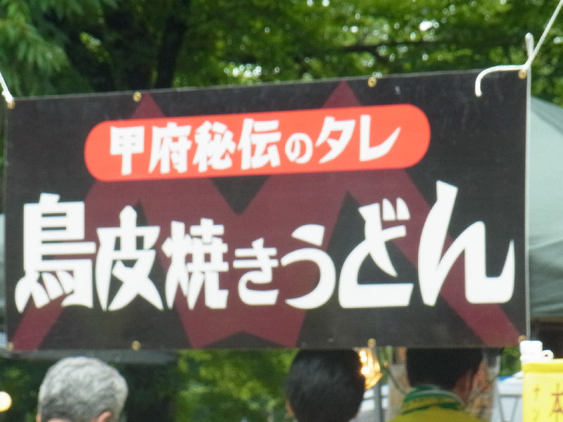 もう十分だったので、食べなかったけど、鶏皮焼きうどんなるものもありました。これも、結構な行列が出来てた気がする。