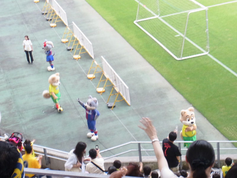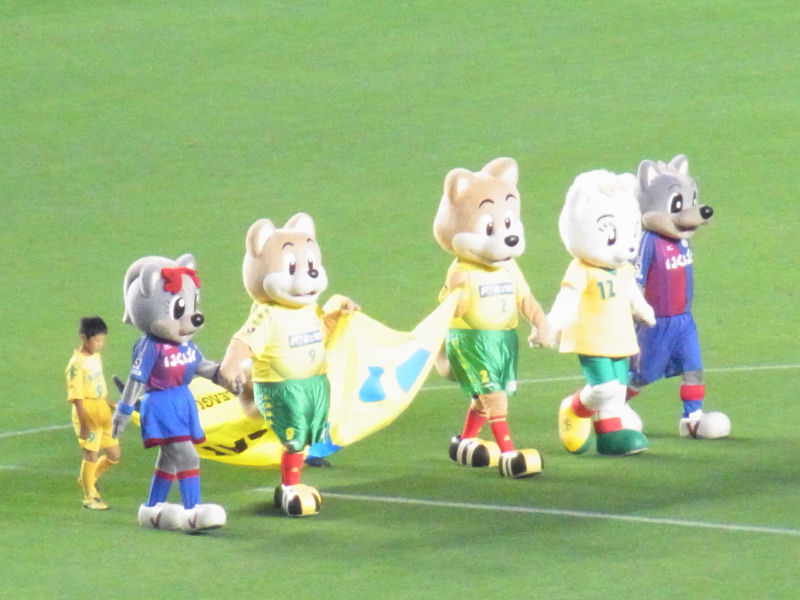 この試合、甲府のマスコットのヴァンくん、フォーレちゃんも来てました。この犬キャラショットはかなり見慣れてきました。