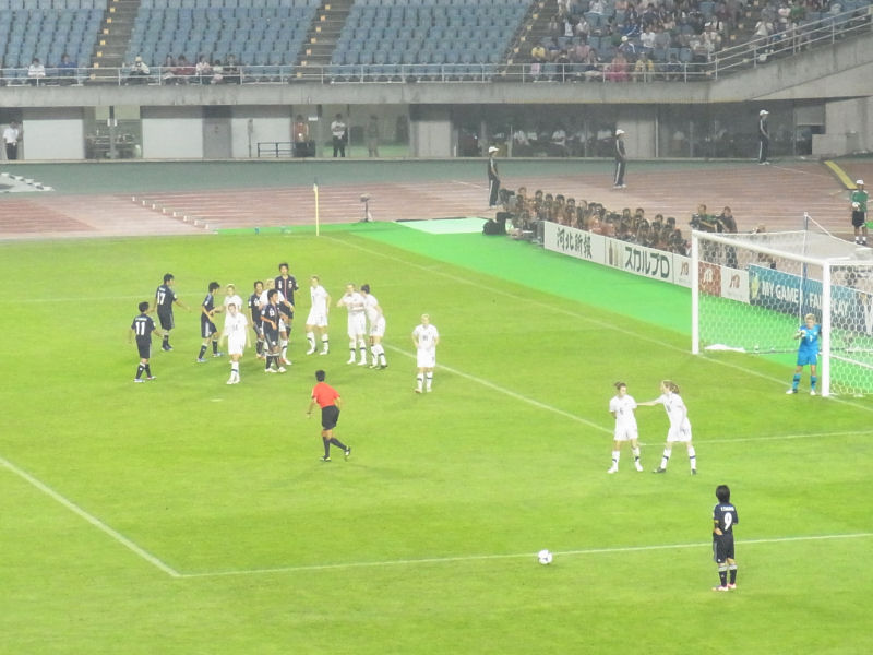 右サイドからの田中陽子のFKは、GK正面になってしまう。日本が怒涛の攻めをみせるが、最後までゴールは奪えず。