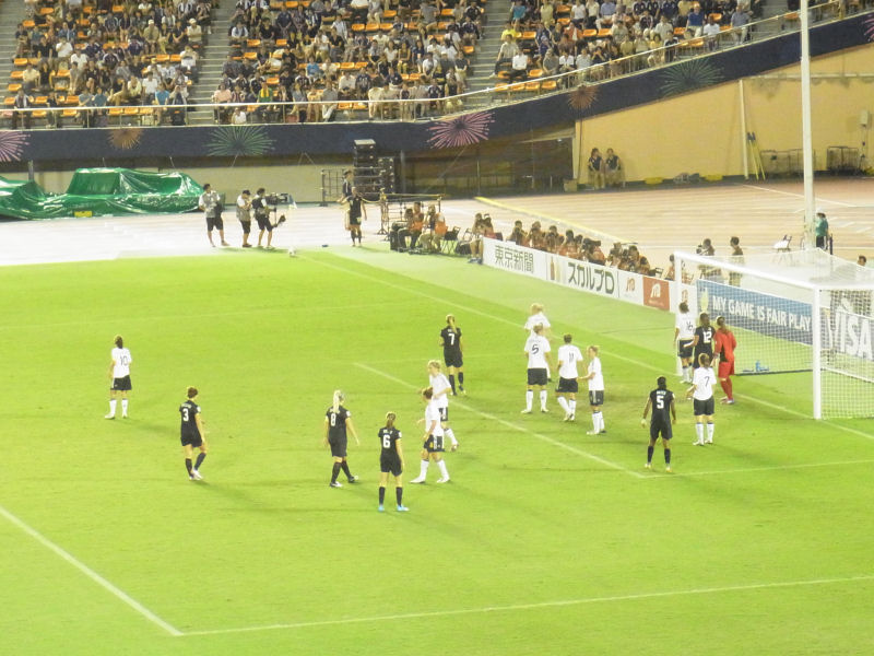 決勝戦前のパフォーマンスが終わって、いよいよ両チームの選手が入場。元々優勝候補同士ではあったが、両チームはグループリーグで既に当たっている。その時は、3-0とドイツが完勝。今大会、ドイツは無失点を続けていているだけに、ドイツの牙城をアメリカが崩せるかというのが試合の焦点だろう。