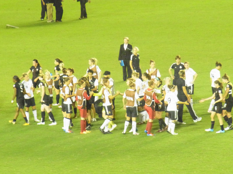 試合後喜びを爆発させていたアメリカの選手たちだが、ドイツの選手たちとも握手をかわして検討を讃え合っていた。