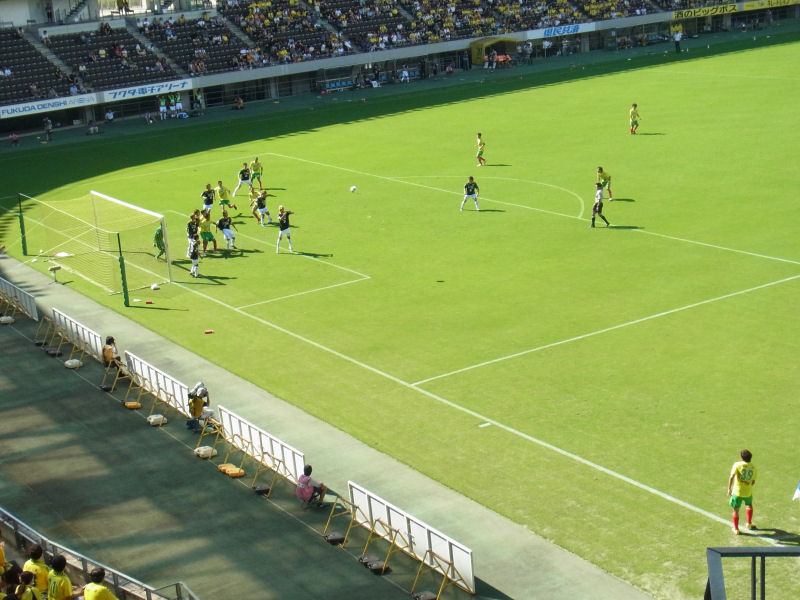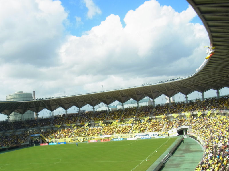 前節、アウェイ富山戦で苦杯を喫して、なんとしても連敗は避けたいホームの北九州戦。天気はよかったんですがね、早い時間帯という事もあってか、ゲーム開始時点ではバックスタンドはかなり空席が目立ってました。