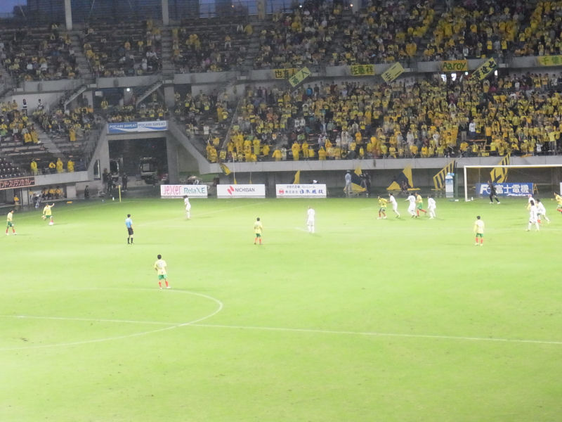 膠着状態になってきていた前半26分、左サイドの坂本と谷澤のパス交換から、谷澤が突破する。中央に上げたクロスに荒田が合わせてゴール。ジェフが先制点を奪う。