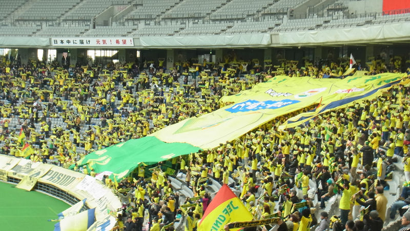 雲が多い天気だったが、試合が始まる頃には晴れてきて、眩しいくらいだった。全体としては鹿島サポが多めだったが、ジェフのゴール裏にも沢山のジェフサポが訪れてました。