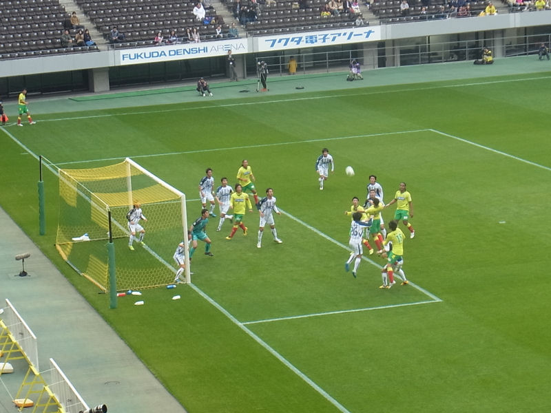 ジェフの攻撃は、右SBの米倉が上がったところから生まれた。ゴールには繋がらなかったが、米倉が上がるとチャンスになる。