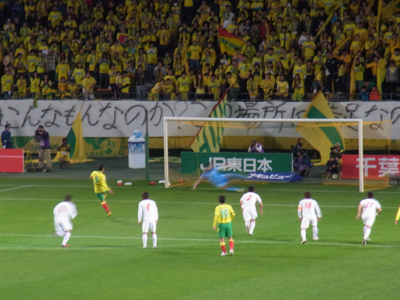 後半32分、ジェフのFKとなり。兵藤が蹴ったボールにケンペスが狙うが、この場面でファウルがありPKをゲットする。
