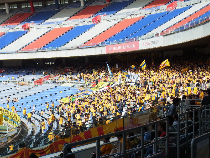 予定より少々遅くなって15時くらいに会場入り。ゴール裏はかなり人が入っていたが、箱が大きいせいか、かなりガラガラに見える。