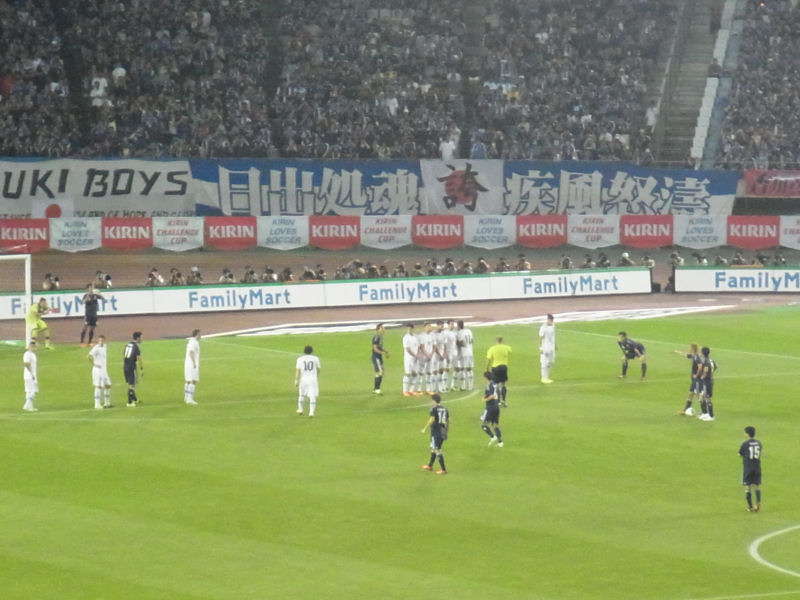 後半27分、日本のFKのチャンス。これを本田が巻いたボールでそのまあゴールイン。いつもの無回転ではなく柔らかい弾道でゴールを奪った。2-4となる。