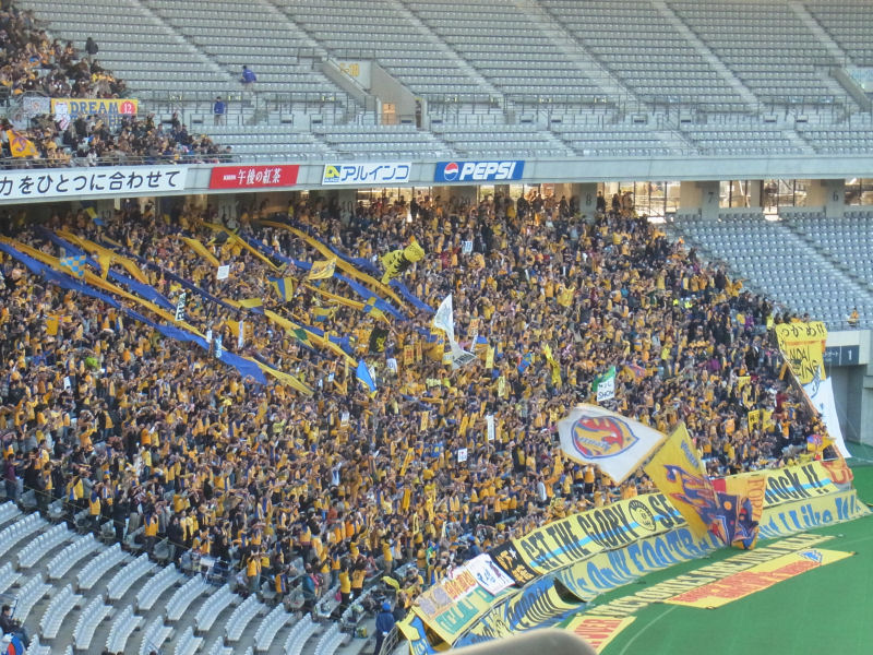 アウェイゴール裏はベガルタサポーターでぎっしりと埋まっていて、開放予定ではなかった上段にも人がいた。後で開放されたのだろうか!?