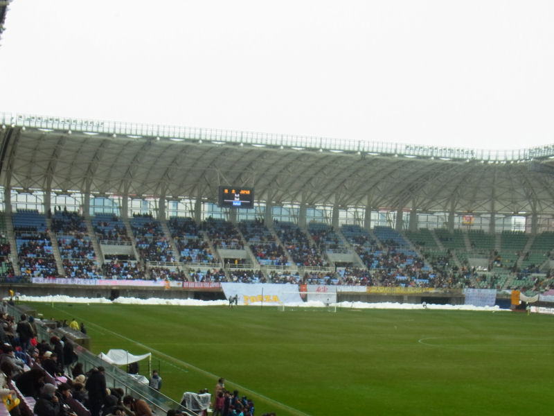 仙台は雪が降って、ユアスタも朝方は雪が積もっていたようですが試合開催に向けて除雪してありました。