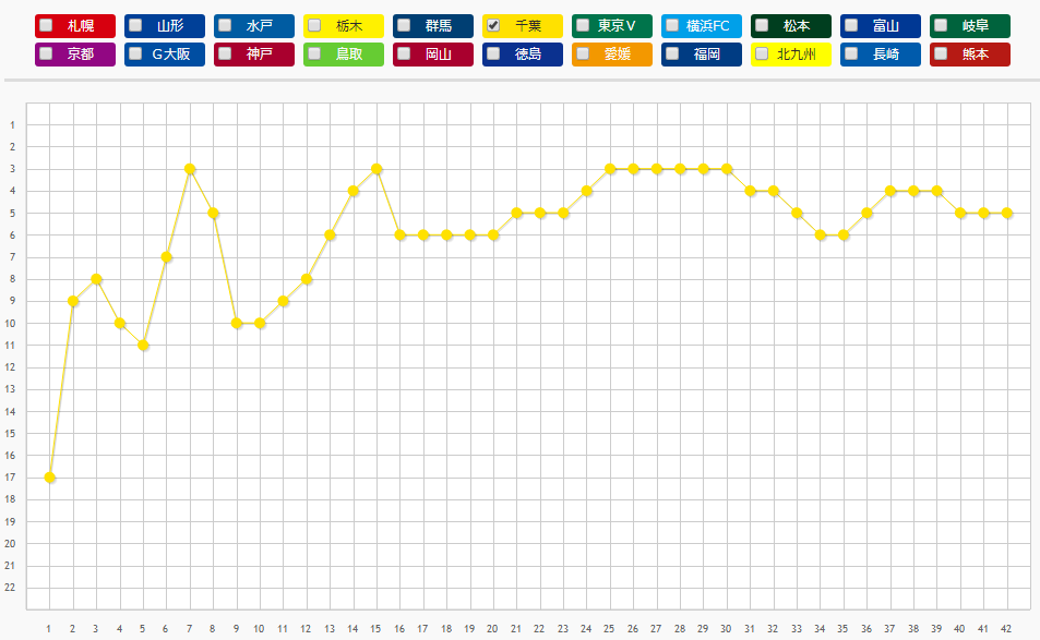 しかし、3連勝の勢いも、苦手としている札幌に負けると、ホームの長崎戦でも苦杯を喫して、プレーオフ進出争いでは下から追い上げられます。