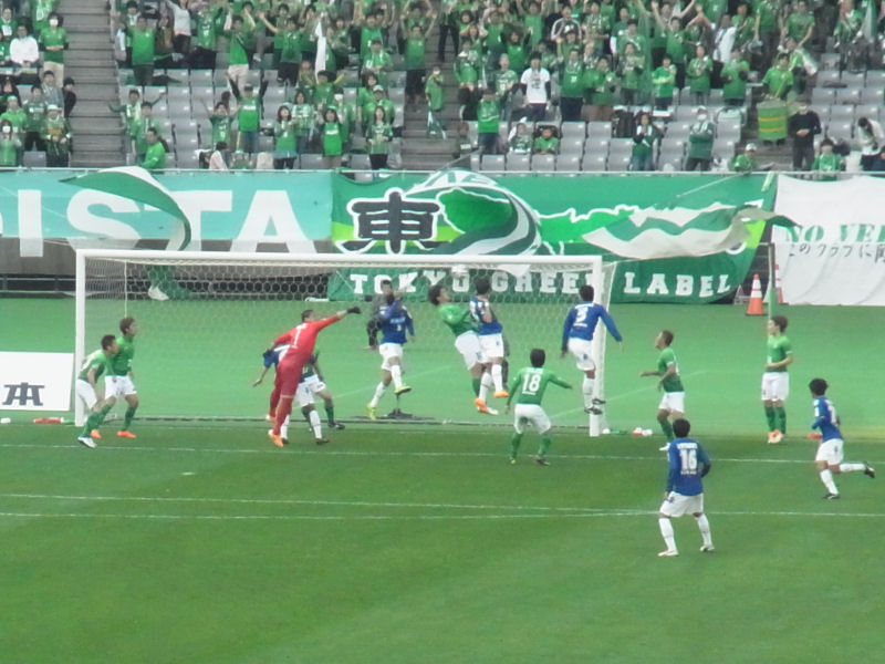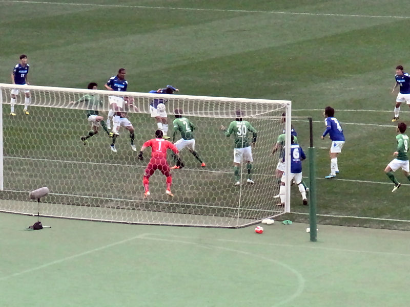 逆にヴェルディが、サイドからペナルティエリアすぐそばでのFKのチャンスとなります。このFKからヘディングで押し込まれて、ゴールを許してしまいます。ヴェルディが先制し1-0となります。