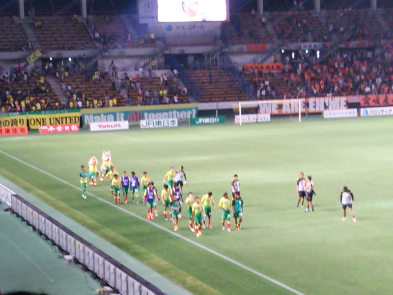 それでは、試合です。ジェフの先発は、GKに岡本、CBに智とキム、右SBに大岩、左SBに太亮、ボランチに健太郎と兵藤、右SHに井出、左SHに谷澤、トップ下に大塚、トップにケンペスという布陣でした。