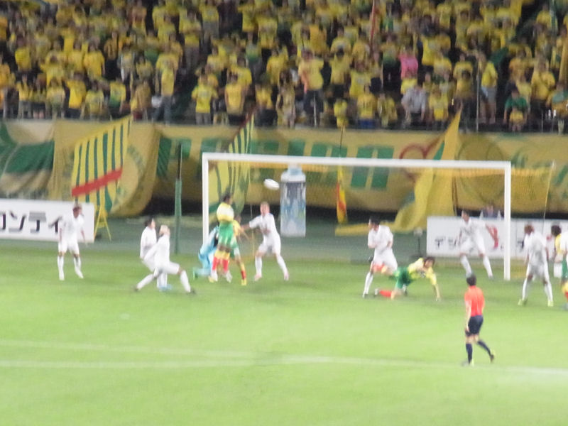 その後半7分、ジェフのCK。太亮からのボールにケンペスが高い打点のヘディングシュート。これが決まって、ジェフが先制します。