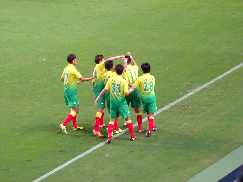 ジェフが優勢に試合をすすめるものの、福岡は裏を一発のパスで狙ってきて油断ならない展開でした。