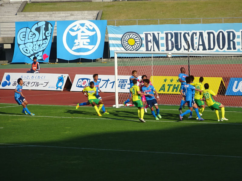 後半7分、ジェフのFK。ヘディングはバーの上を越える。